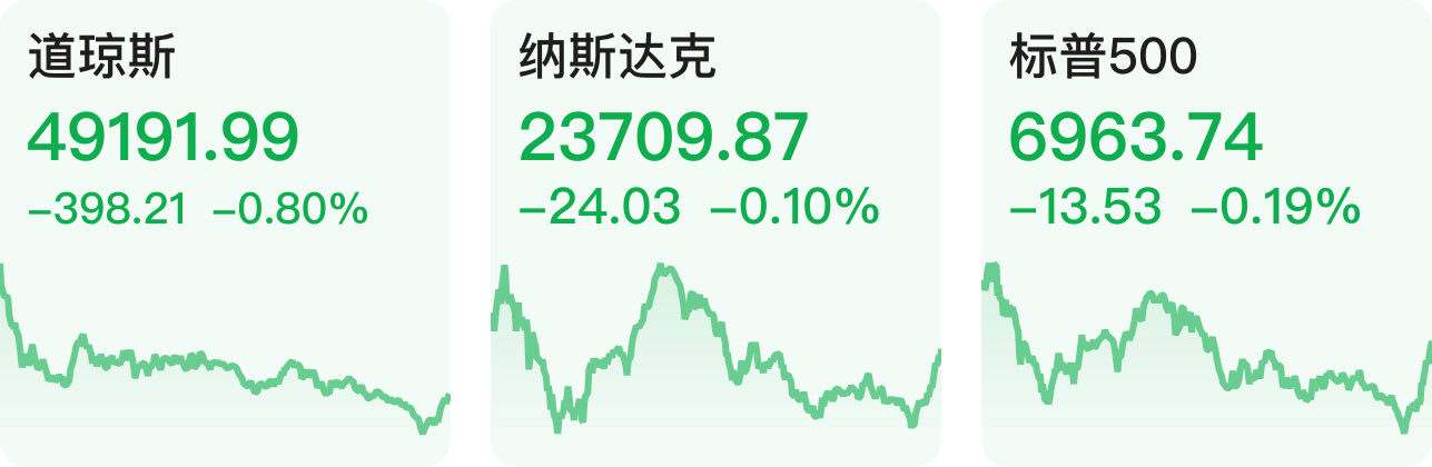 美股三大指数集体收跌,道指跌0.80%,纳指跌0.1%,标普500指数跌0.19%。科技股涨跌互现,英特尔涨超7%,谷歌涨超1%续创历史新高,英伟达、苹果小幅上涨;美光科技、高通跌超2%,Meta、亚马逊、微软跌超1%,特斯拉小幅下跌。热门中概股多数下跌,纳斯达克中国金龙指数跌1.86%,拼多多跌超5%,蔚来、小鹏汽车跌超3%,京东、理想汽车跌超2%,百度、哔哩哔哩跌超1%,阿里巴巴小幅上涨。